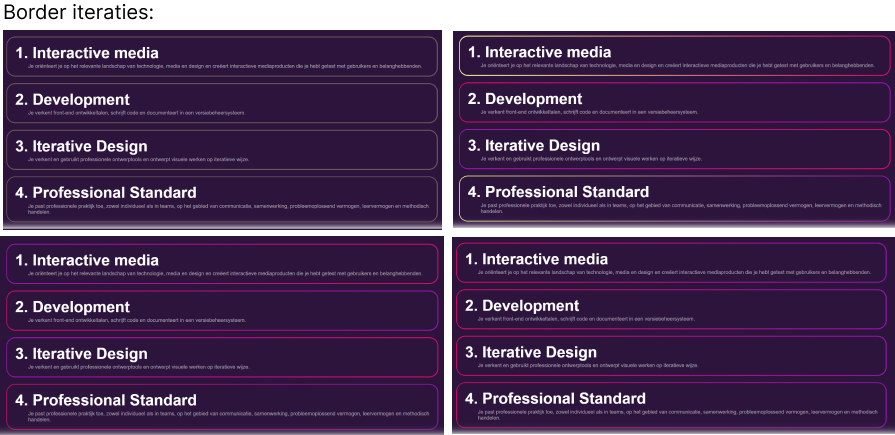Ik heb deze website gemaak voor mijn studie. De opdracht was om een digitale portfolio te maken. In deze portfolio moet ik een aantal leeruitkomsten kunnen tonen. Omdat ik Associate Degree doe heb ik 4 leerdoelen, namelijk interactive media, development, iterative design en professional standard. Hier onder zijn beschrijvingen van elk leerdoel te vinden samen met bewijsmateriaal en een reflectie.