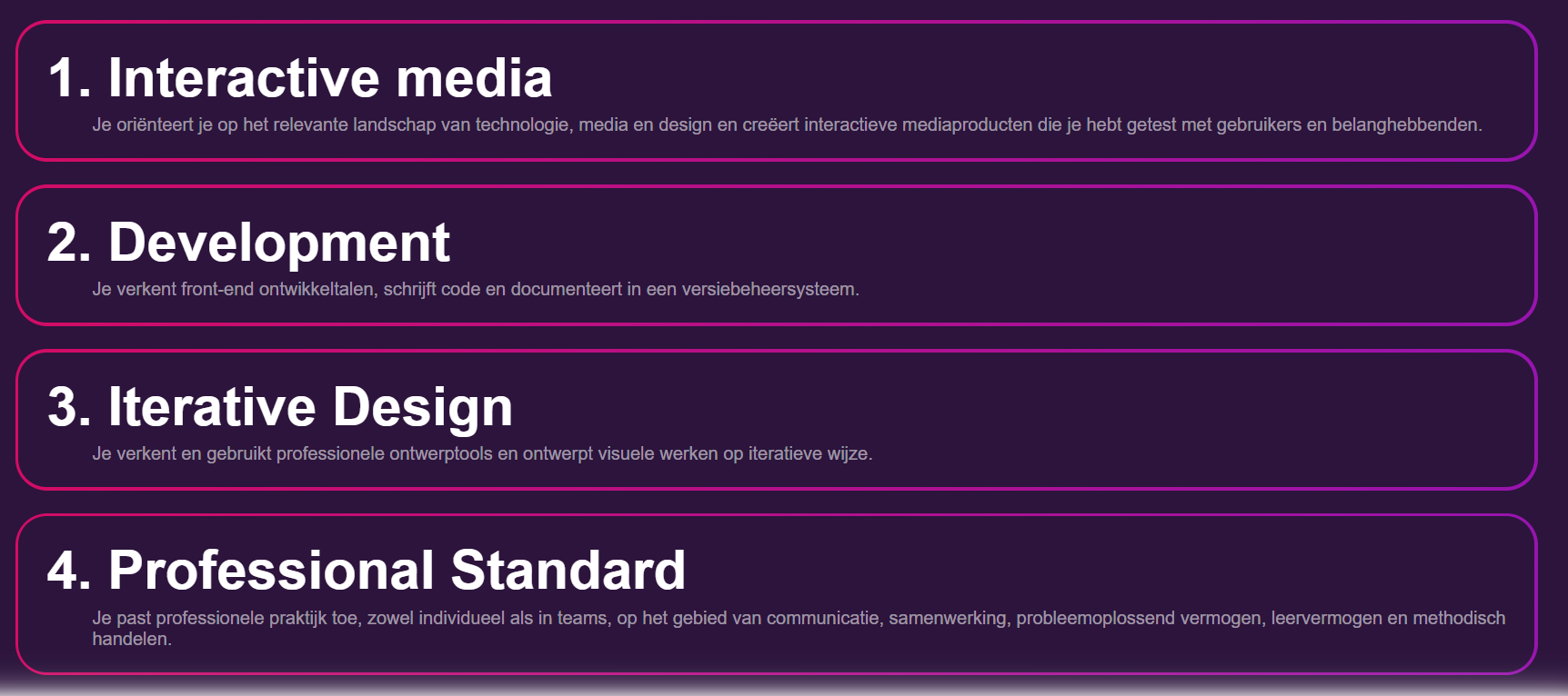 Op het begon vond het heel moeilijk om zelf een hele website te moeten maken. Maar het is mij gelukt, ik ben super erg trots op wat ik heb geleverd. Ik heb zelf progressie kunnen zien in mijzelf. In het begin van dit semester dacht ik dat ik niks kan en dat coderen helemaal niks voor mij is. Maar nu zijn mijn gedachtes veranderd. Ik vind coderen echt heel leuk. Ontwerpen gaat eigenlijk altijd al goed bij mij. Ik vond dit een leuk opdracht om te doen omdat ik de basics heb kunnen leren. Omdat ik aan het einde weer een stuk heb gecodeerd, heb ik kunnen laten zien dat ik het nu helemaal zelf kan.